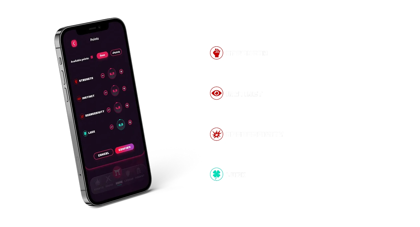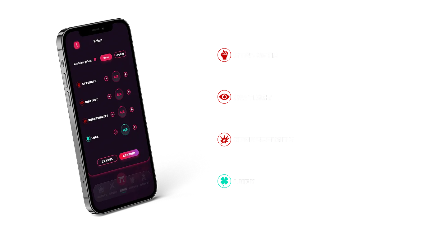 レベルアップによってサイバー・ヤクザの属性ポイントを増やします。(力、本能、攻撃性)。戦闘では運の属性は関係ありません。