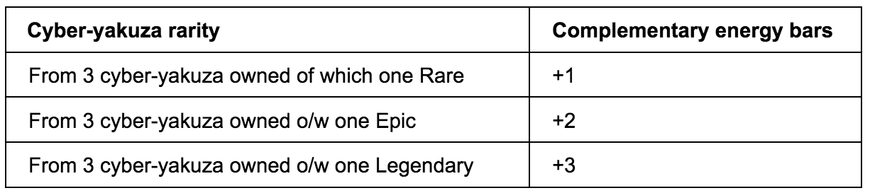 レア、エピック、レジェンダリーのサイバー・ヤクザNFTを所有することで、ユーザーは追加の ウォークエネルギーを得ることができます。