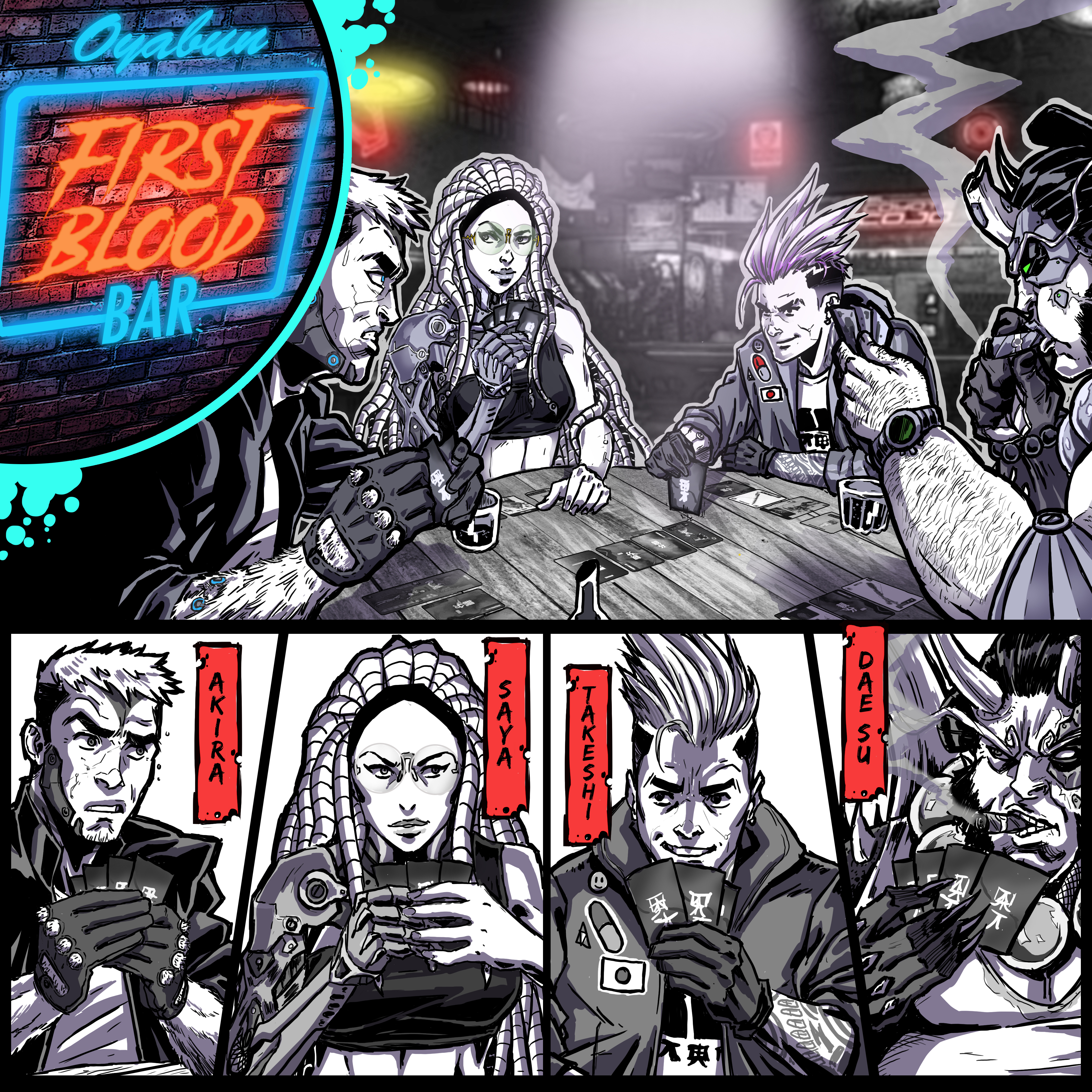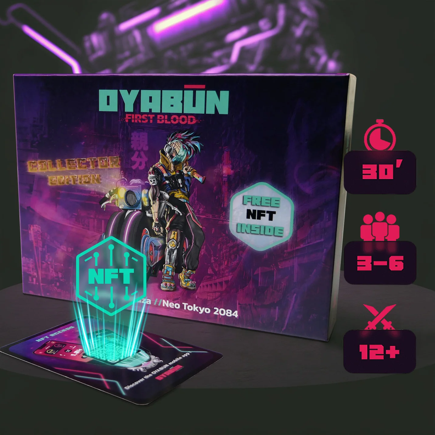 「OYABUN: First Blood」は、私たちが開発している革新的なボードゲームで、実際の世界とWeb3の　デジタル領域をつなぐ橋渡しとしています。各ゲームボックスにはNFTが含まれており、伝統的な　　ボードゲーム愛好家にWeb3宇宙でのOYABUNの冒険に乗り出すインセンティブを提供しています。