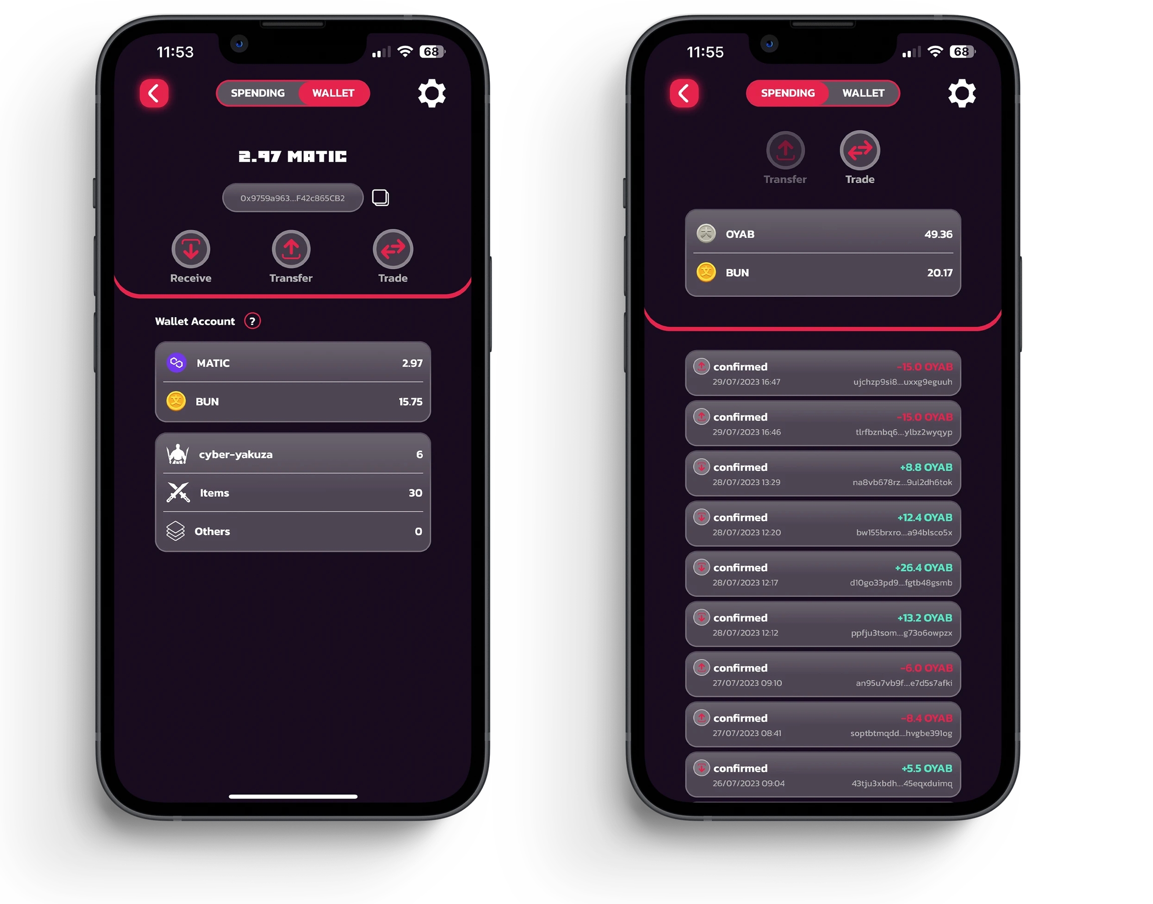 アプリ内の分散型ウォレットはPolygonネットワーク上で動作し、以下の機能を提供します: