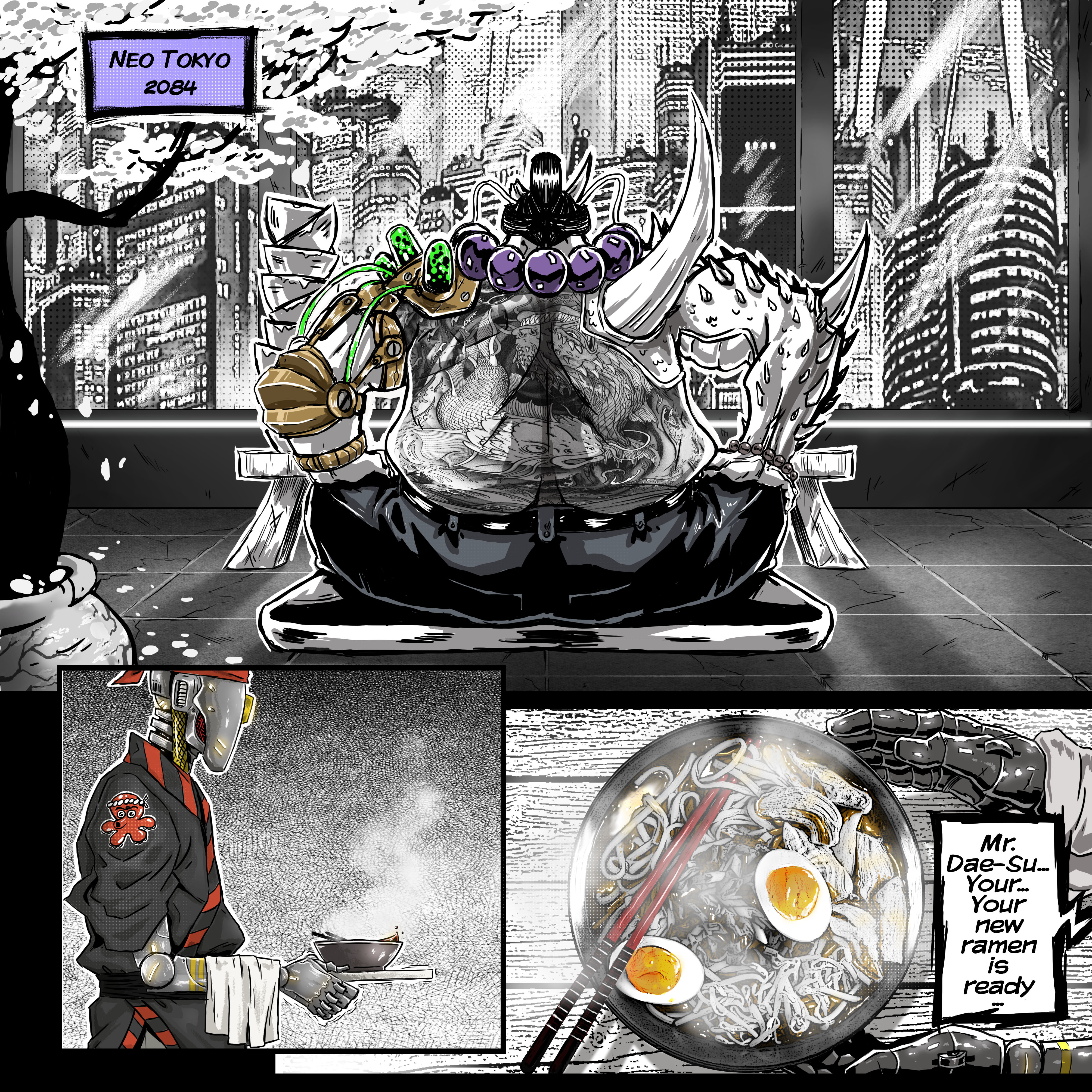「大須: ラーメン物語」は、OYABUN宇宙を豊かにする多くのマンガストーリーの最初のものです。OYABUN宇宙を拡大し続けるにつれて、さらに多くのマンガストーリーを皆さんと共有することを　　楽しみにしています。各ストーリーはOYABUNサーガの新しい章となり、私たちの世界に深みと詳細を加えます。ですので、リラックスして「大須: ラーメン物語」を楽しみ、ネオ東京のネオンに照らされた通りからのさらにエキサイティングなマンガ物語をお楽しみに。